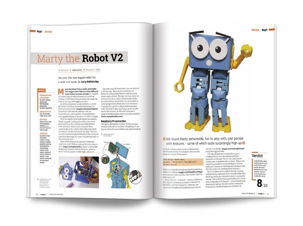 Marty is back. This small walking robot looks like a toy, but with Raspberry Pi added it suddenly comes to life with a powerful Python API (application programming interface). We’ve been putting Marty through their paces this month, and come away impressed with the performance.