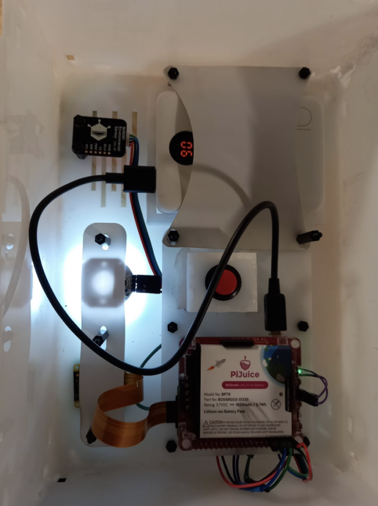 To conserve as much power as possible, a PiJuice HAT with a power supply and a real-time clock was used to power on the system once a day for just five minutes to do its job.