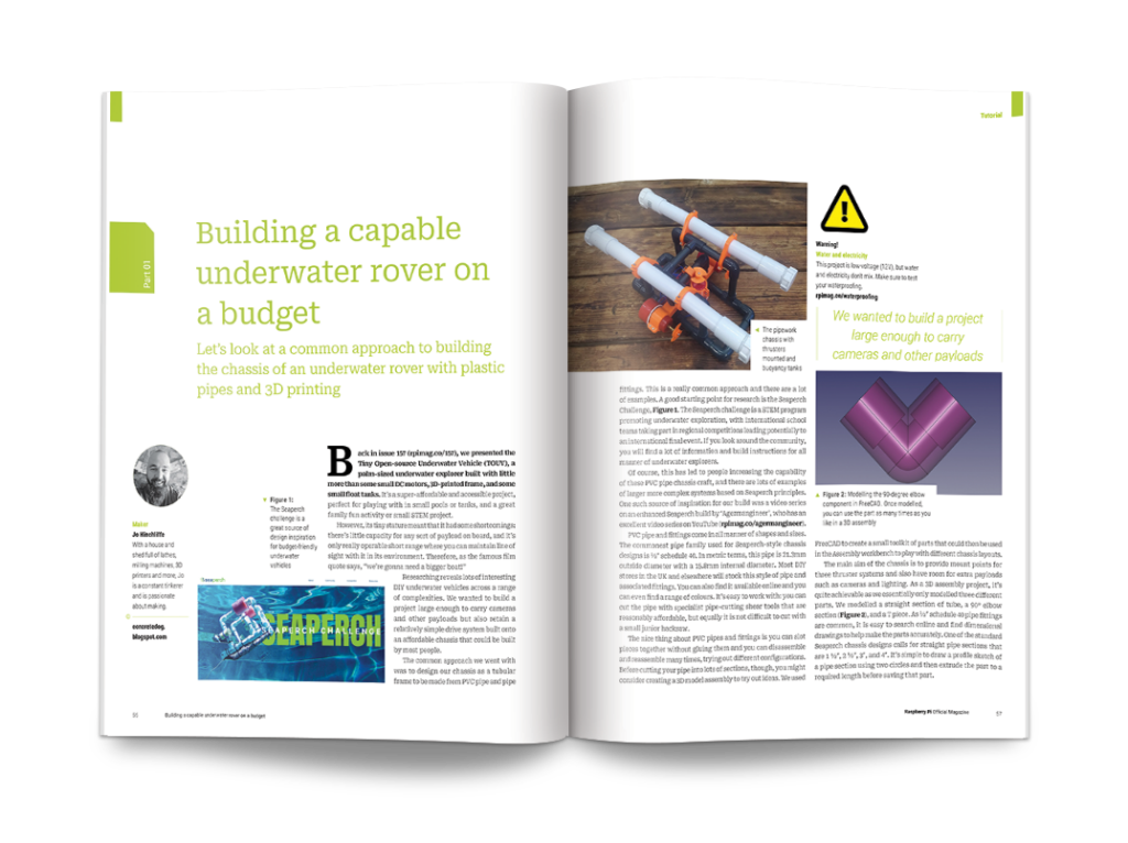 If you’re more into sawing and drilling than needlework, Jo Hinchliffe has built an underwater rover out of plastic piping and 3D printed parts, controlled by Raspberry Pi 5.