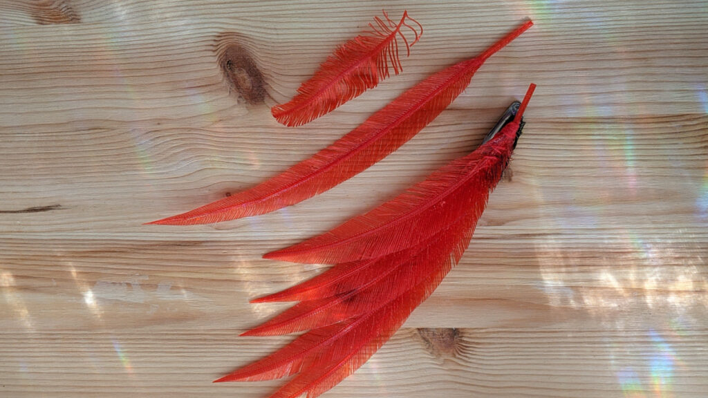 “I have recently worked out how to 3D-print feathers. This is a neat little slicer trick to be able to make these. They act very much like real feathers; I printed all these straight, but I’m able to bend them by hand like you can with normal feathers. And I really like them because they’re quite ethical. The feather trade is very similar to the fur trade, and for that reason I haven’t bought feathers in a really long time, even though I like making hats and stuff. But the ethics around it are a bit dodge. So I’m pretty excited to be able to work with feathers again, any colour or size that I want. I reckon cosplay wings would be super-cool too, that’s what I’m excited about at the very minute, but there are things that I’m getting excited about all the time.