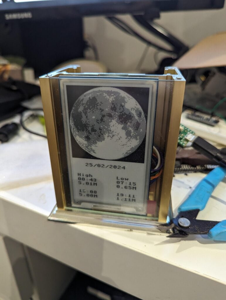 One person who’s transcended time, and possibly space, PJ is the creator of the Moon and Tide Clock. Built into a repurposed brass carriage clock, this e-paper device is programmed using a Raspberry Pi Pico W, powered by a 3.7V LiPo battery, and kept accurate when offline by a real-time clock module designed for Pico. There’s also a lovely toggle switch to turn the device on and off with a satisfying ‘thunk’, though the maker admits that with the power-saving options available in Pico, this wasn’t really necessary.