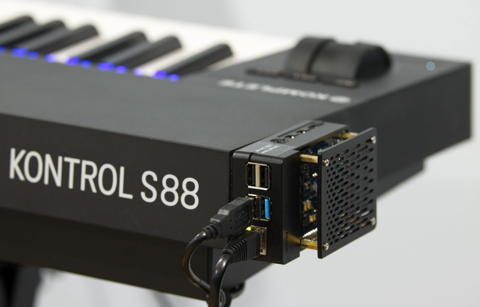 The last main way is a USB to Ethernet connected keyboard, as Michael explains: “to facilitate the composer client’s needs, a Native Instruments S88 keyboard was placed in the control room, but it also needed to be flexibly deployable to allow relocation to other studio spaces as needed. The S88 requires a USB connection to the DAW [Digital Audio Workstation] PC. Twisted pair to USB converters were not reliably sufficient to the cause. Long USB cables posed a similar liability. Raspberry Pi 4 with a PoE HAT provided the right solution by enabling a rock-solid USB to Ethernet connection.”