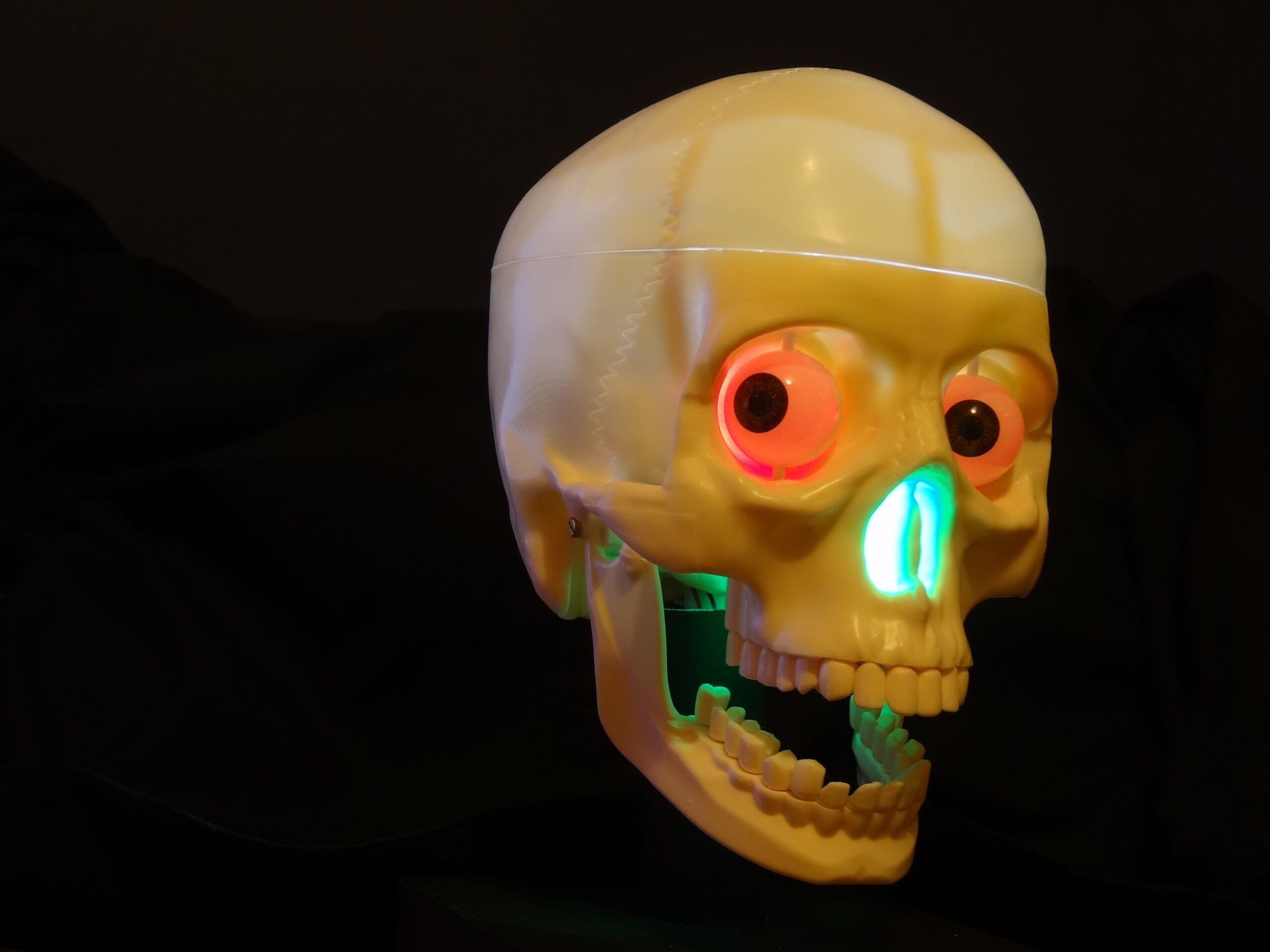 We won’t spoil the surprise, but it involves a lot of soldering and tweaking as you install several servos and motors to articulate the eyes and jaw, along with several lights, a speaker system, and a way to control the neck. It’s all controlled from an interface written in Python, the code listing and files from which are available in the tutorial.