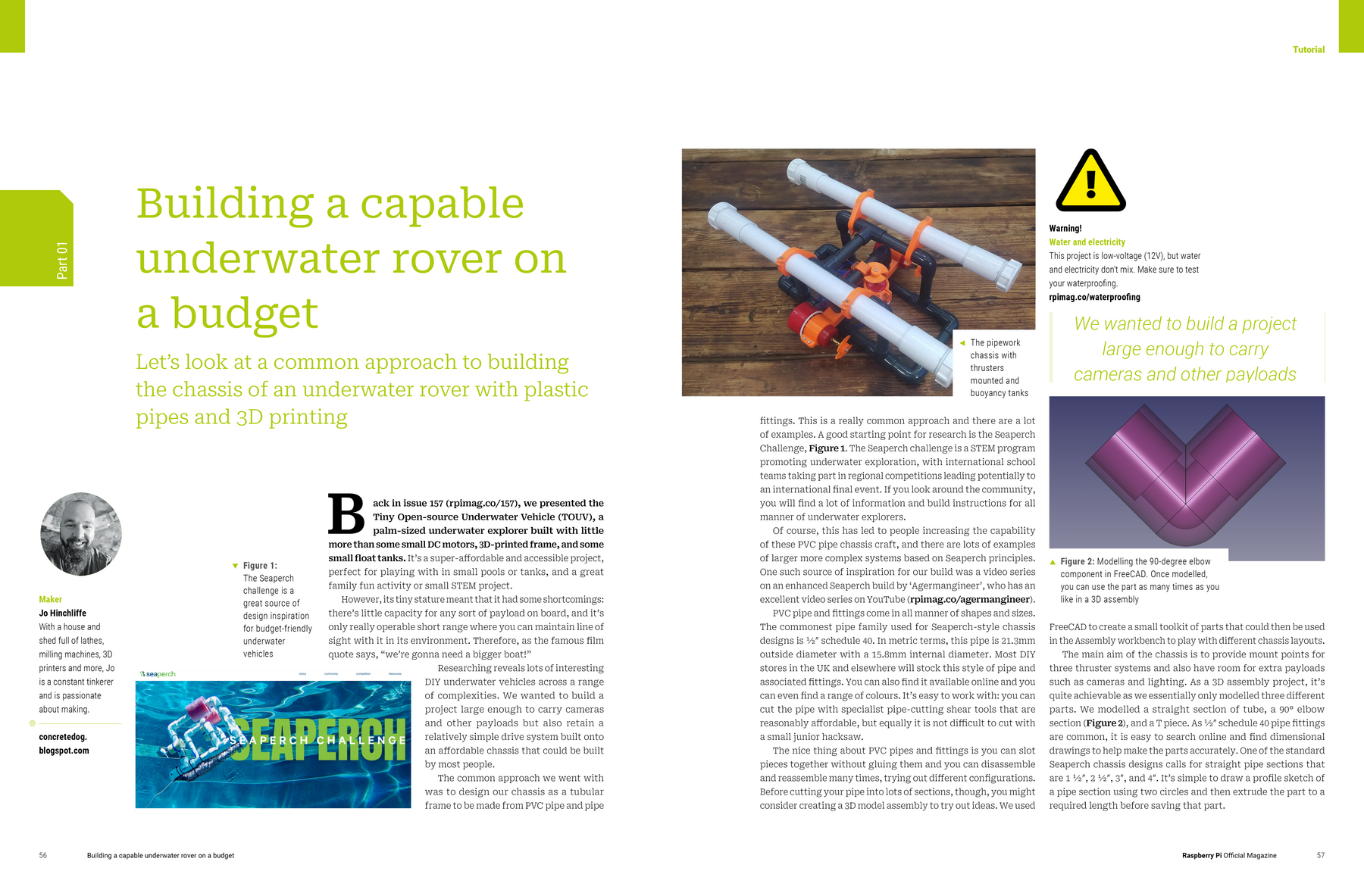 Also in the magazine: craft a touch-sensitive quilt block; use Python to design 3D objects; build an underwater rover using a Raspberry Pi 5 and some PVC piping; avoid shocking yourself, with the aid of a degaussing tool; run a large language model (LLM) locally on Raspberry Pi; and build an AI dataset. Plus: